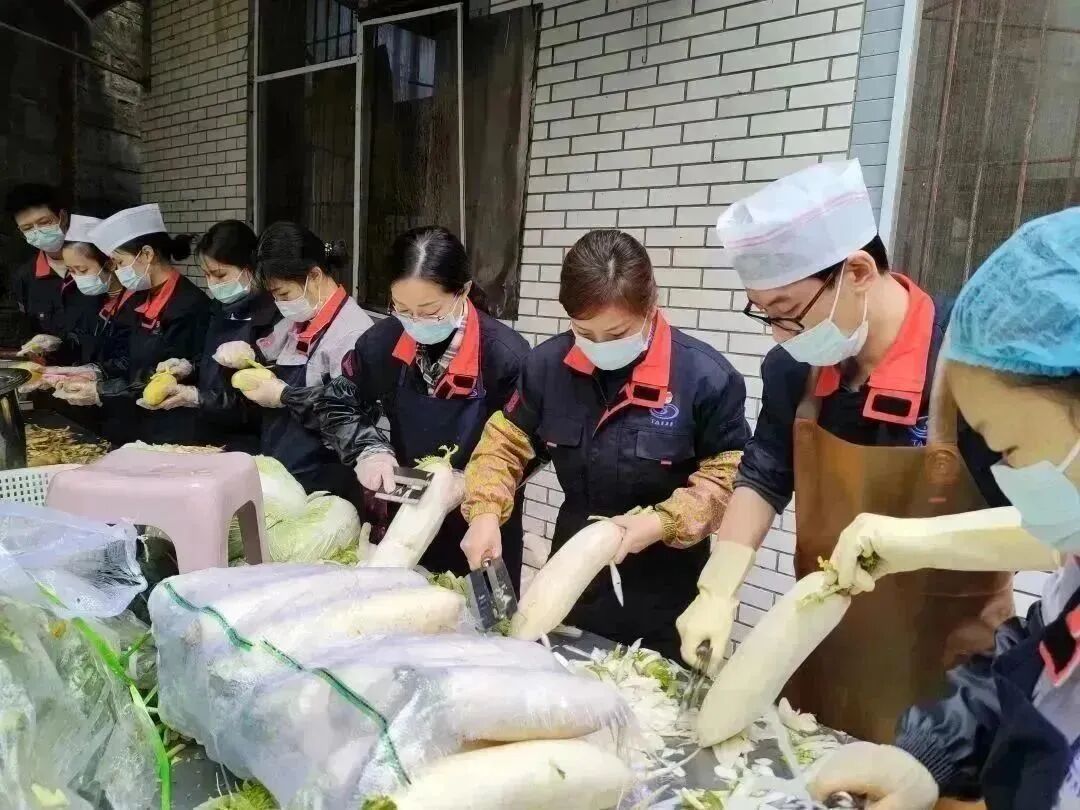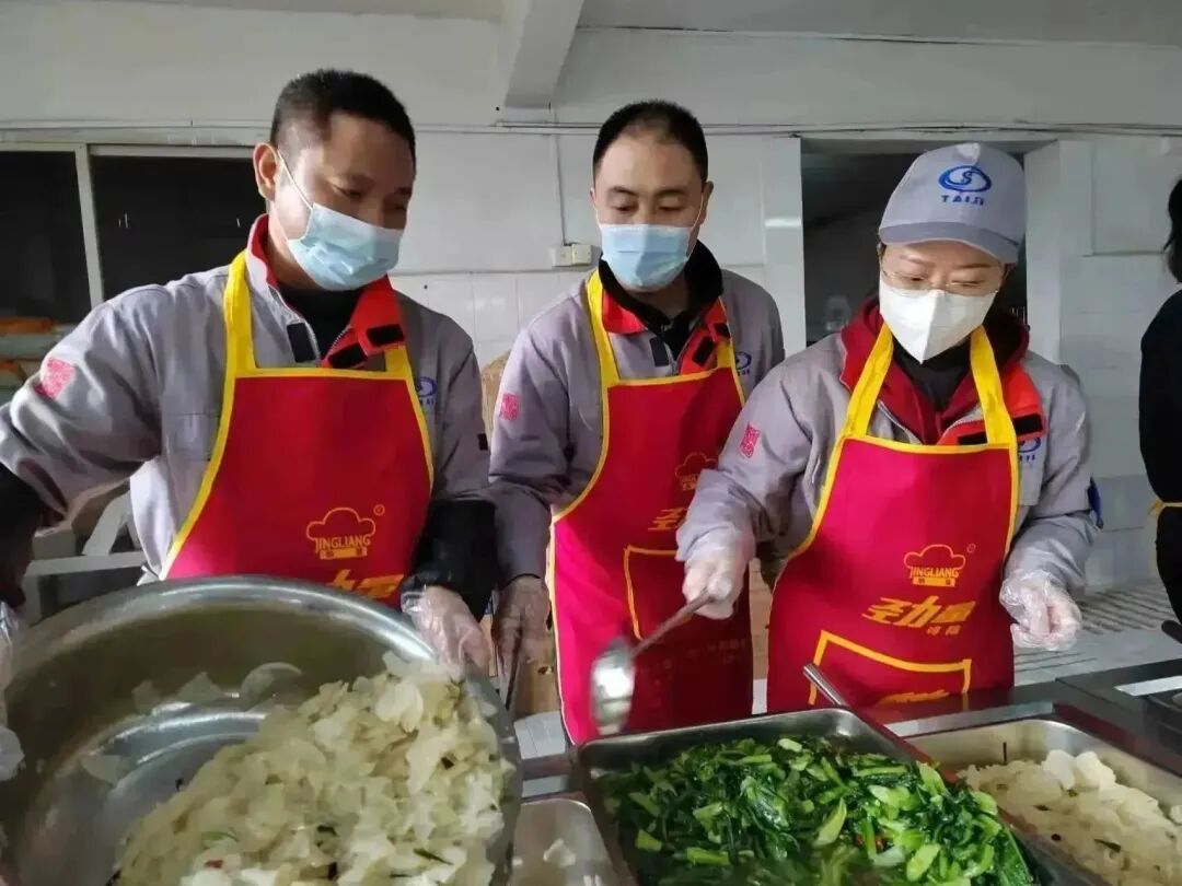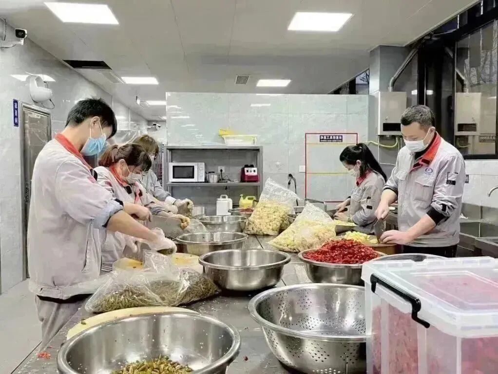 厨师长龙林海挥动着大锅铲,每天要炒近1.5吨的食材,一周时间体重下降了10斤;秦智勇本在协调物资收集转运工作,当看到招募志愿者的信息后,他第一个报名,55岁的他不知疲惫地穿梭在食堂各个岗位,活像一个年轻小伙;陈泓都每天在洗槽边一站就是6个小时,8天时间已经洗了近20000套碗盘。还有很多车间的员工们下班后主动到食堂支援,切菜打饭、盛汤洗碗、擦桌拖地,共同保障员工们吃上了可口的饭菜。