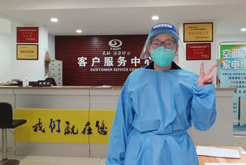 小女孩的妈妈是太极涵菡物业黄龙花园项目客服前台领班全胜雪,自从11月11日黄龙花园小区检测出第一例阳性以来,全胜雪就和其他两位同事一起坚守在客服前台。“我们前台客服岗有三个人,从小区有‘阳’以来,一天差不多几百通电话,最忙的时候两台电话都是一起接。业主们着急恐慌,我们不仅要理解,还必须内心坚定,耐心细致解释一个个问题,安抚好业主。”全胜雪早上把孩子早餐安顿好,8点准时到岗上班,直到晚上7、8点才下班回家,曾经由于用嗓过度,一天下来竟说不出话来,同事都让她赶紧去输液,领导都给她批假让她休息两天,但她嗓子一有好转又继续上岗了,她甚至还把行军床和被子都搬到了客服中心,她说万一楼栋封了,我回不了家就在公司睡。