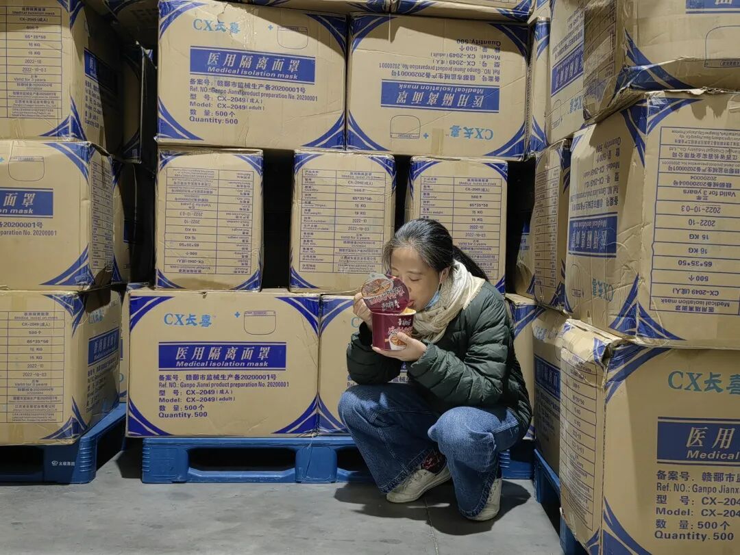 丁颖经历过2020年疫情大考,深知此次重庆疫情来势凶猛,11月11日她就开始在公司闭环管理。看似柔弱的她却是“铿锵玫瑰”,她不停往返于办公室、物流公司之间,白天抢订单,联系各方货源,协调物流收发货;晚上,丁颖自己的工作告一段后,又赶到物流仓库,协助清点发往各区域的订单和物资,在等待出货间隙,她才美美地吃上一碗泡面;深夜,当大家都休息时,她还一直关注着各方订单动态,制订工作计划。