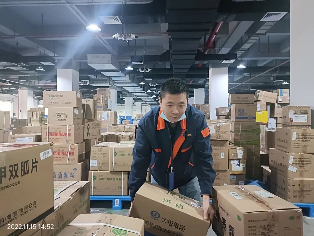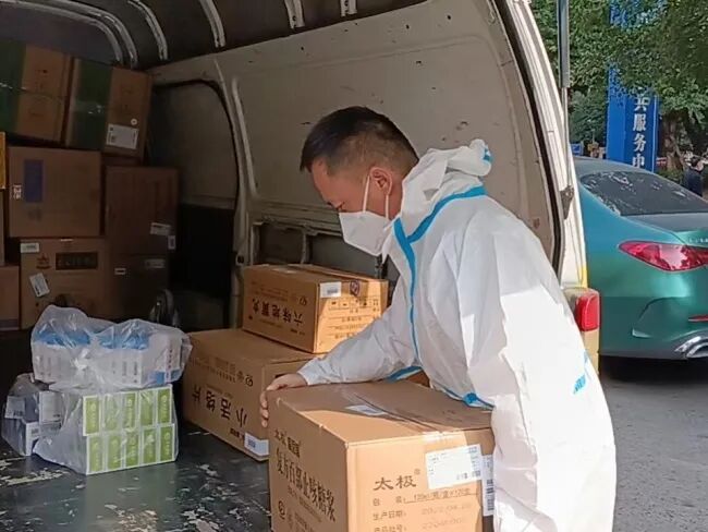 仅11月13日一天,桐君阁物流公司配送运输队完成了30多个地点的物资运送,驾驶员、配送员一共才21人,比平时少了2/3,但完成了运输66趟次,近6000件物资。他们全力以赴,不完成当日配送任务绝不休息,因为大家都憋着一股劲,拼着干、赶着干,只为打赢这场仗。