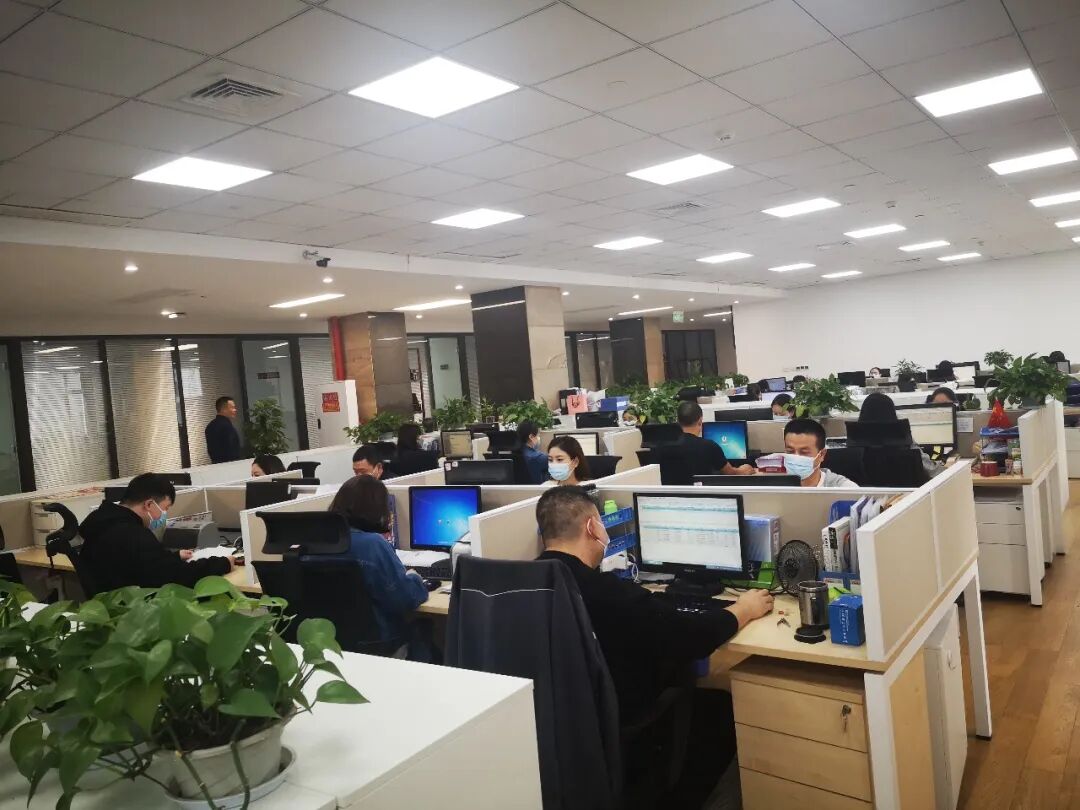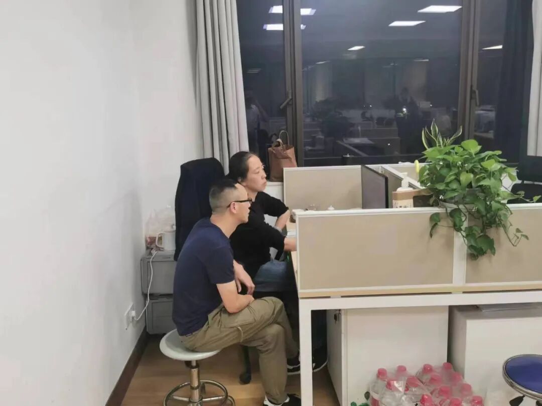 深夜的办公室灯火通明,值守员工坚守岗位