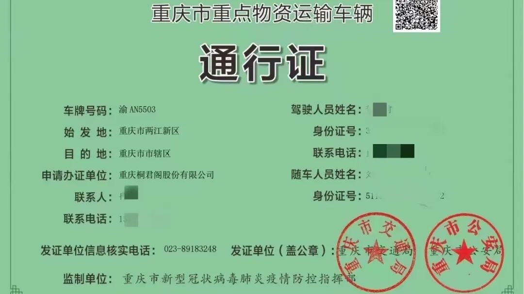 重点物资运输车辆通行证