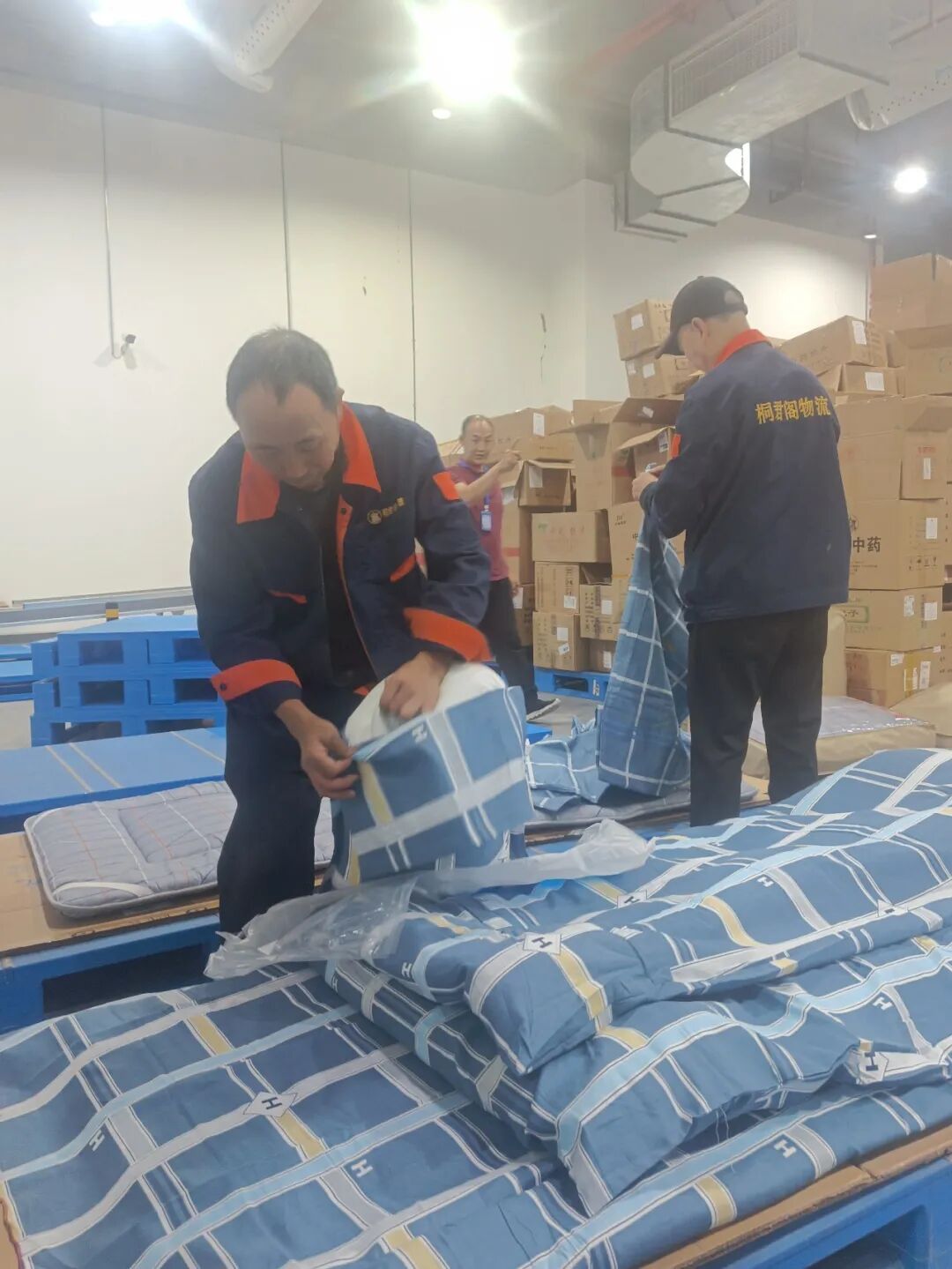 自11月重庆疫情以来,桐君阁物流公司作为重庆市获批的药品、器械三方物流公司,为近30家企业提供专业物流配送服务,为确保防疫及医疗物资的仓储配送工作及时开展,密切关注疫情发展情况,及时研判形势,在人员配备、物资调配等方面提早谋划,积极投入到为医药连锁、医疗机构等单位的配送工作中,同时全力配合桐君阁股份公司打好防疫保供突击战。为保障日益紧迫的防疫物资配送需求,63名“特别能吃苦、特别能战斗”的物流在岗员工以汗水为武器、以防疫物资为弹药,以岗位为战壕、以仓库为战场,吃泡面、睡托盘,恪尽职守、夜以继日奋战在岗位上。