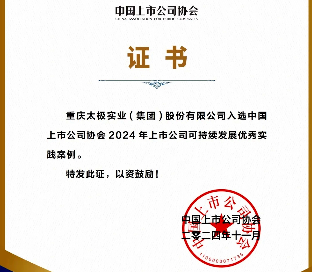 太极集团入选2024上市公司可持续发展优秀实践案例