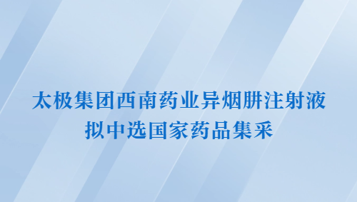 【中国食品药品网】太极集团西南药业异烟肼注射液拟中选国家药品集采