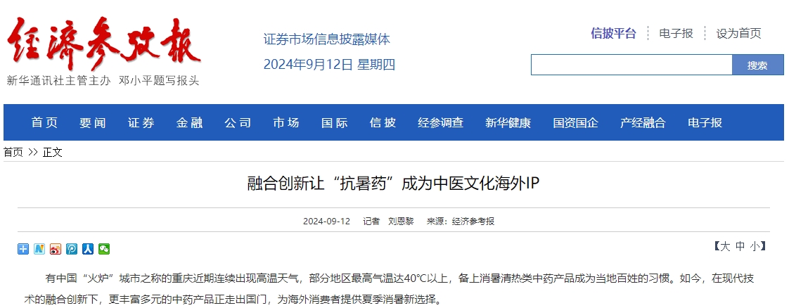 【经济参考报】融合创新让“抗暑药”成为中医文化海外IP