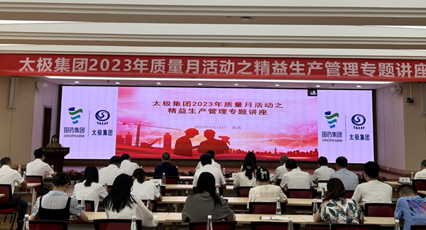 太极集团组织开展多形式专业技能培训学习,积极组织、参与各项技能竞赛,着力打造一支高素质、高水平质量管理队伍。组织开展2023年质量月活动之精益生产管理专题讲座,运用精益管理的核心思想和企业应用,为精益生产走向精益发展提供理论基础,促进企业高质量发展。