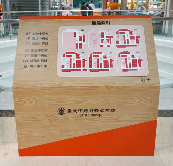 走进市场,富含古朴气息的“桐君阁赋”映入眼帘,向人们诠释着“修合虽无人见,诚心自有天知”的初心和真心,也代表了该市场重庆药商代代相传、诚信待客的经营理念。