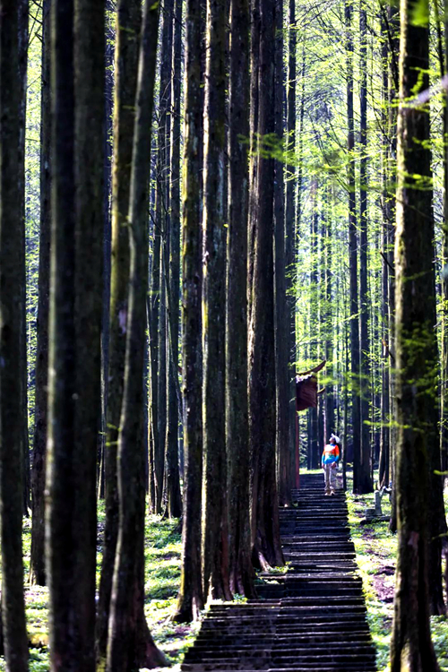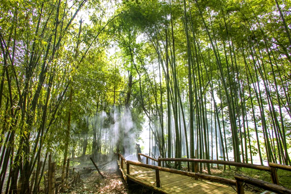 岛内风光旖旎、茂林修竹,林内水雾缭绕、曲径通幽