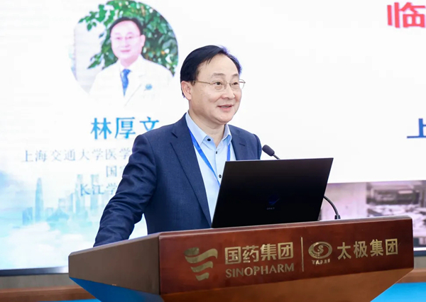 ▲上海交通大学医学院临床药学院院长、国家杰青、长江学者特聘教授林厚文作《临床需求驱动的循证和精准用药》报告