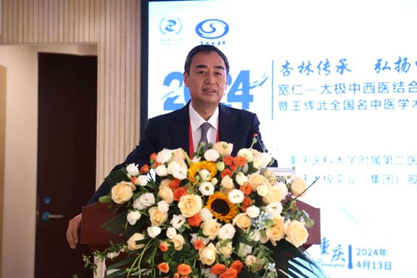 重庆市卫生健康委员会党委委员、副主任,市中医管理局副局长赵勇提出,中西医药相互补充、协调发展是我国医疗卫生事业的显著特征和独特优势,希望宽仁-太极中西医结合研究中心发挥好平台作用,聚焦临床重大、疑难问题,在更深层次上加强中西医协作攻关,在更高水平上提升中西医结合临床疗效,不断深化院企协作机制,为中西医结合临床研究和成果转化树立榜样和标杆。