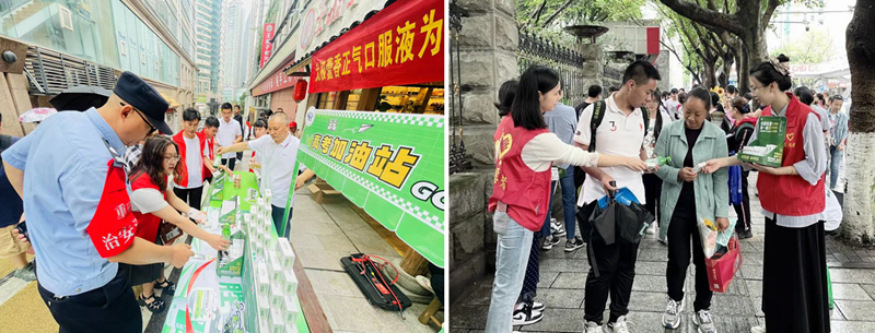 本部团支部、营管中心团支部在重庆及全国20多个省份的重点考场开展“高考送清凉”公益活动。在考点附近设立爱心公益赠饮点和高考服务站,为现场焦急等待的家长和辛勤工作的护考人员赠送藿香正气口服液,在炎炎夏日为紧张激烈的高考送去清凉和祝福。