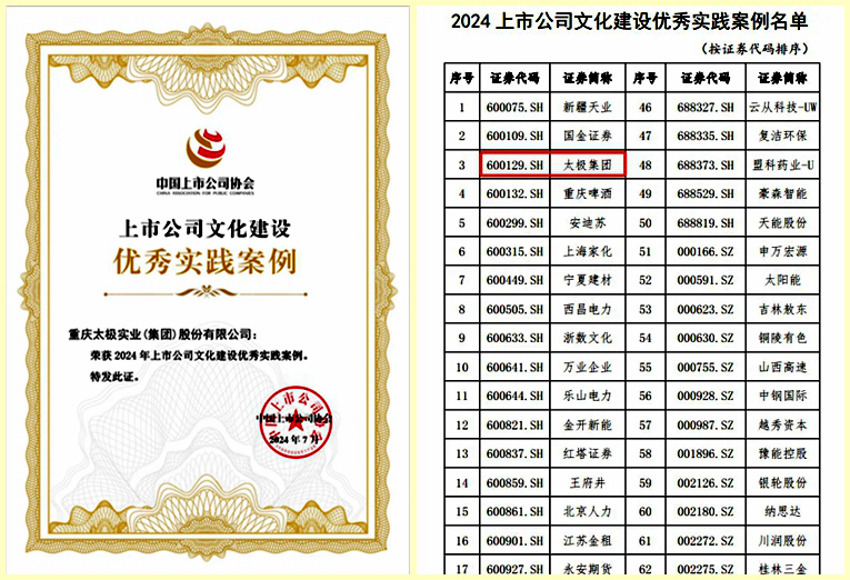 太极集团荣获“2024年上市公司文化建设优秀实践案例”