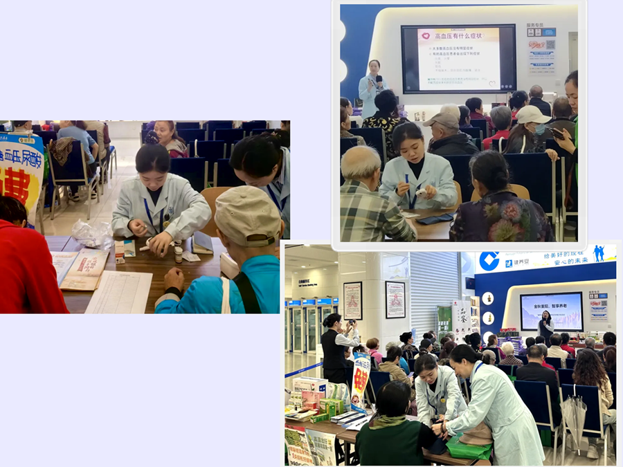 桐君阁大药房龙康国药店携手建设银行重庆杨家坪支行,在养老金融特色网点组织开展“健养安”健康及金融知识沙龙活动。活动现场,老花镜、适老座椅、适老图书角等设施一应俱全,同时免费提供血糖血压测试、中医义诊等健康服务,真真切切保障老年朋友的身体健康。