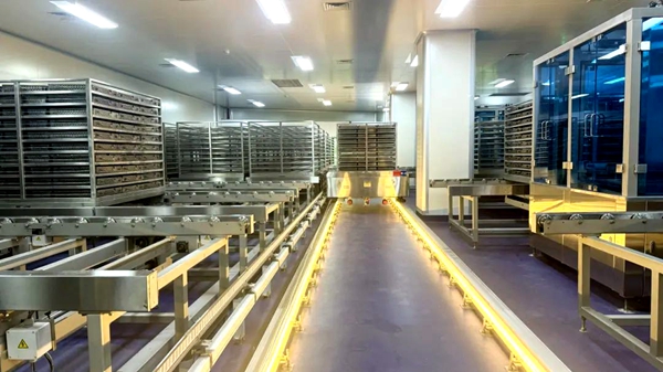 记者在国药太极涪陵制药厂口服液制剂车间看到,12条全自动高速灌装生产线、15条全自动高速包装生产线、1600米物流输送线开足马力运转,一片热火朝天的景象。生产线的有序运行,得益于刚刚建成投用的缓存库。库内存放着5000套药盘,通过SCADA远程操控,有轨机器人便可进行自动收纳、运送和补给,这样,即使后工序出现设备故障,也不会影响前工序的生产,而像这样的缓存库,车间已建成两个。