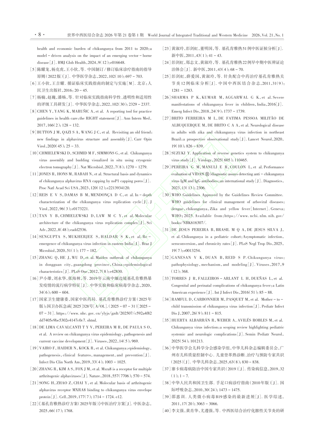 基孔肯雅热是由伊蚊叮咬传播的急性传染病,儿童为重症高风险人群,目前国内尚无特异性抗病毒药物及疫苗,治疗以对症支持为主,中医辨证治疗为有效措施之一。《共识》将基孔肯雅热归为中医“湿温”范畴,明确湿热郁遏证为早期(急性期)常见证型,症见高热或身热不扬,皮疹稀疏,瘙痒不剧,头身、关节疼痛明显,倦怠乏力,或伴恶心,纳差,便溏,舌红,苔腻或厚,脉濡滑数,指纹紫滞。治则:清热化湿、解毒透邪。中成药:可在中医师指导下酌情选用藿香正气口服液等。