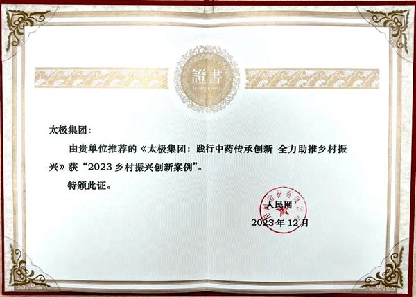 太极集团荣获“2023乡村振兴创新案例” 塑造中医药传承创新发展样板